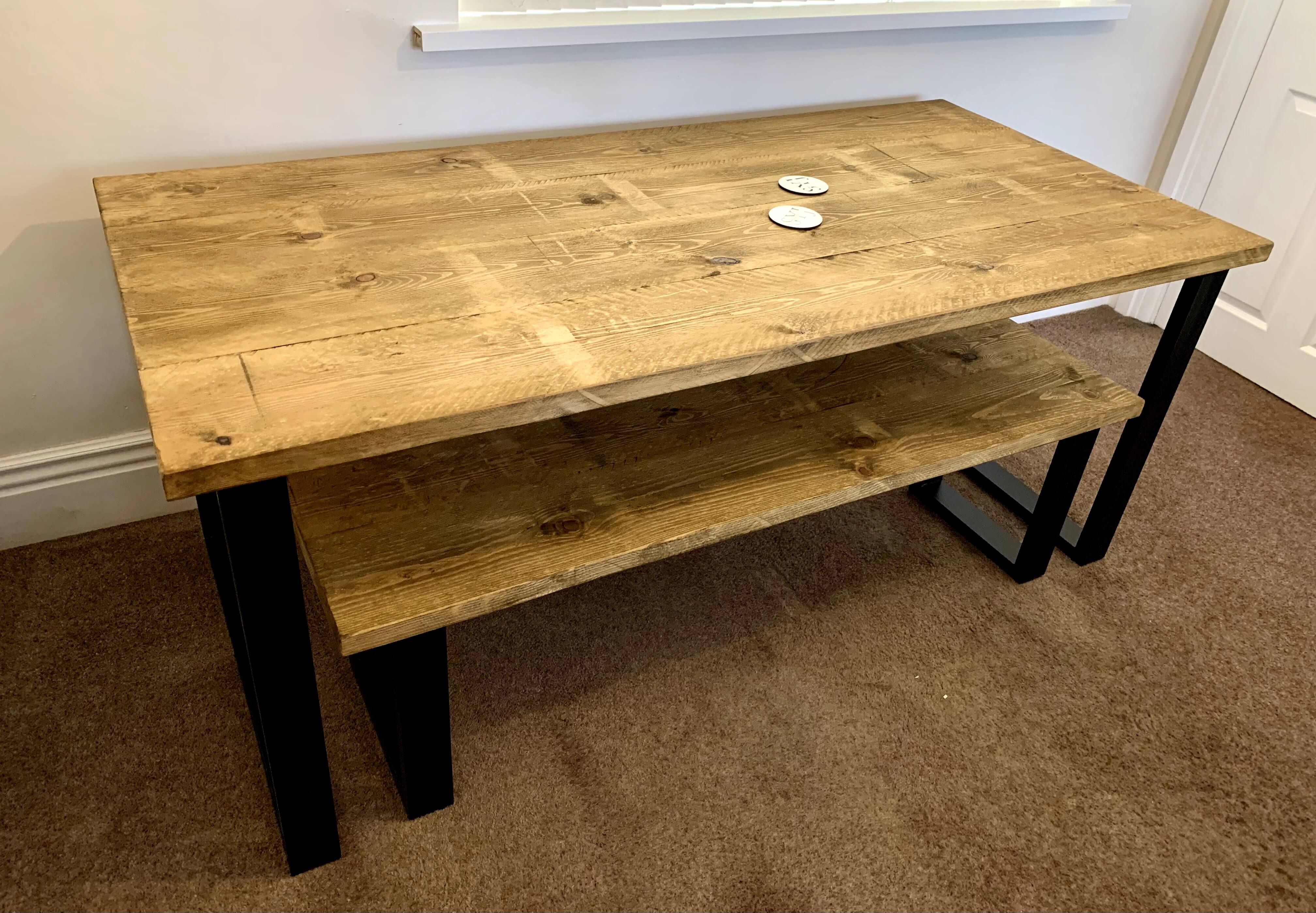 Benches are 30cm shorter than the table to allow them to fit perfectly underneath.